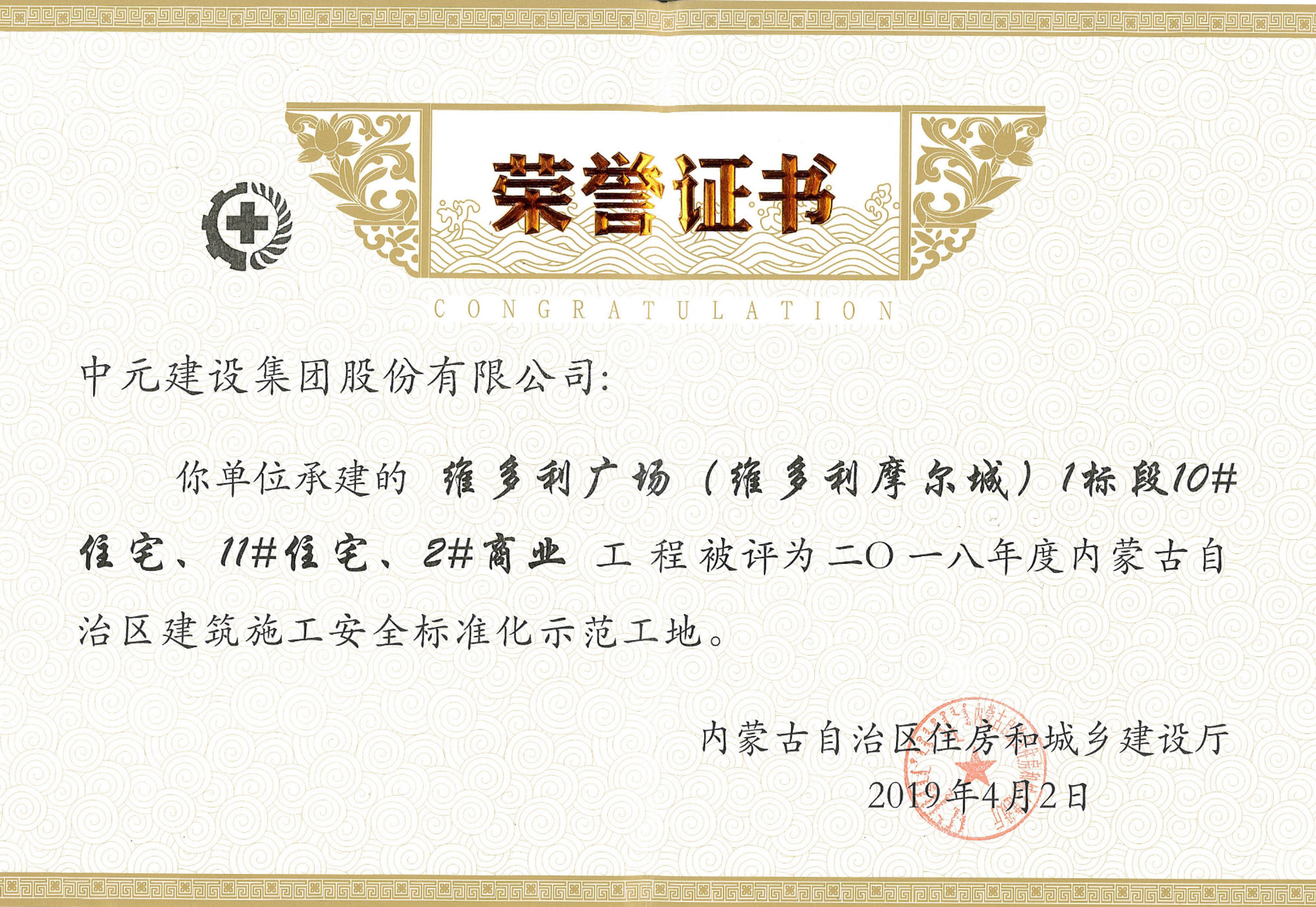 2018年度内蒙古自治区建筑施工安全标准化示范工地的通知(维多利广场)