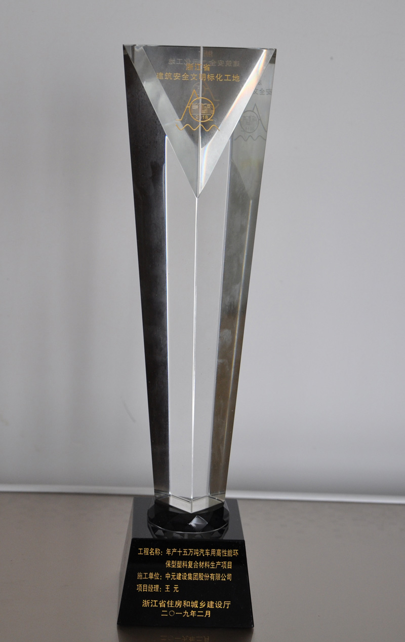 2018年度浙江省建筑安全文明施工标准化工地(年产十五万吨汽车用高性能环保塑料复合材料)奖杯
