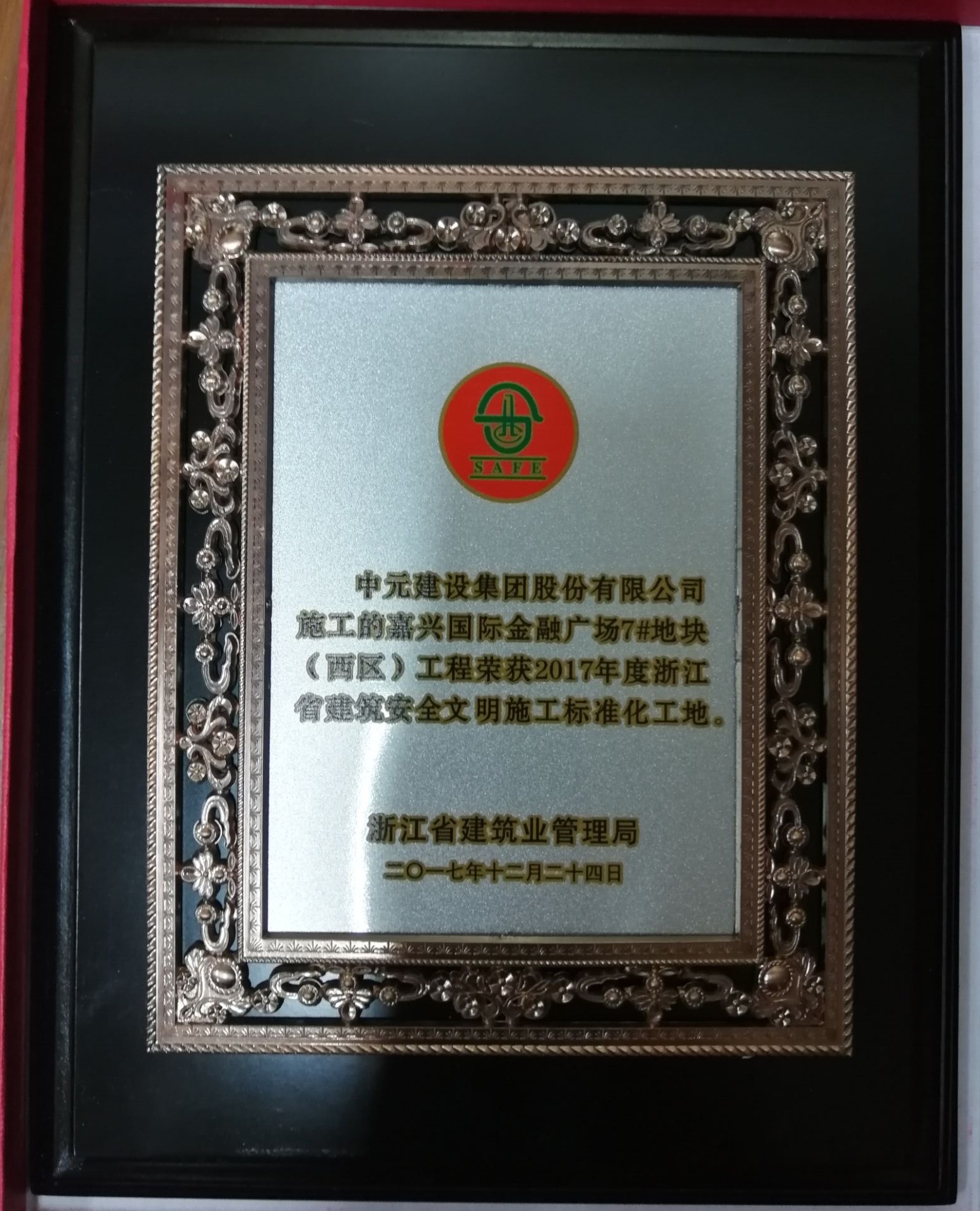 2017年度浙江省建筑安全文明施工标准化工地(嘉兴国际金融广场7#块地)