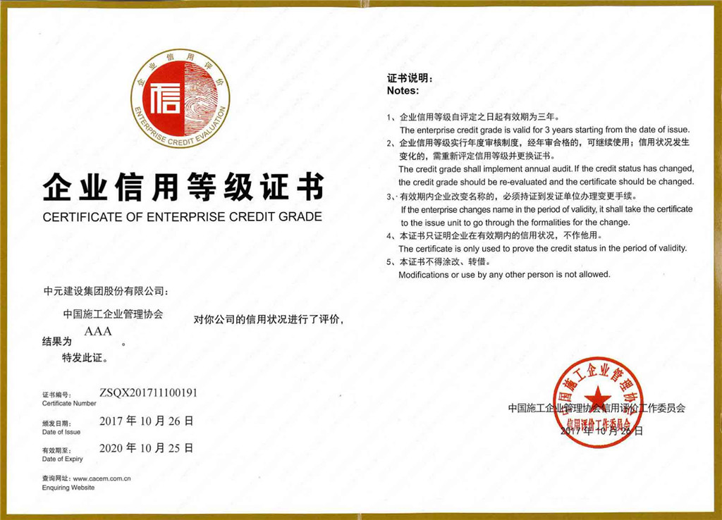 2017年企业信用等级证书(AAA)