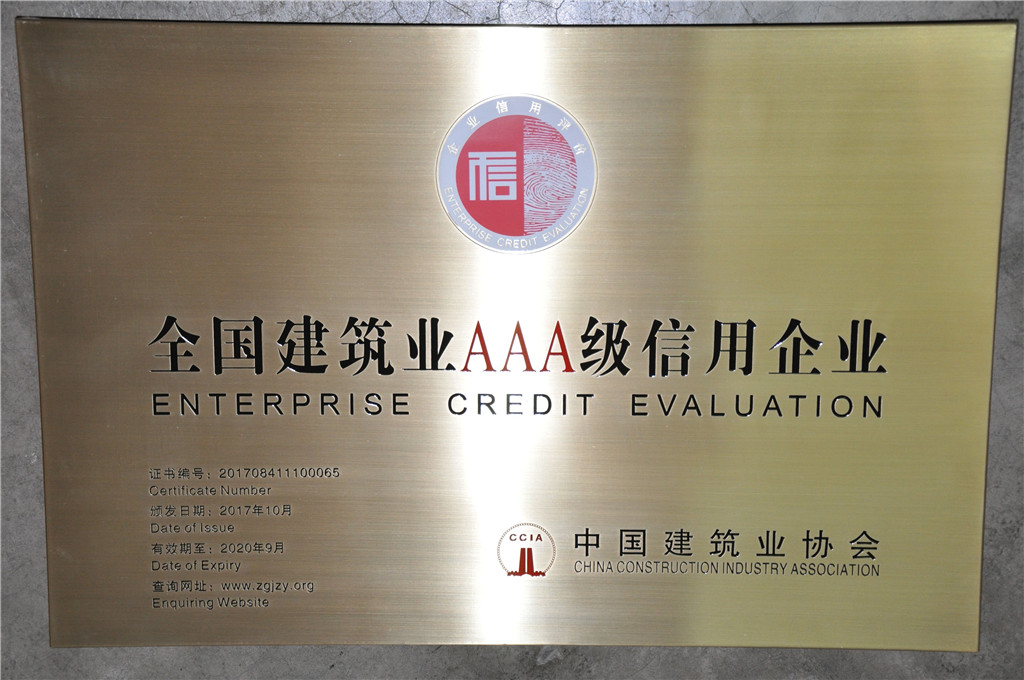 2017年全国建筑业AAA级信用企业(荣誉奖牌)