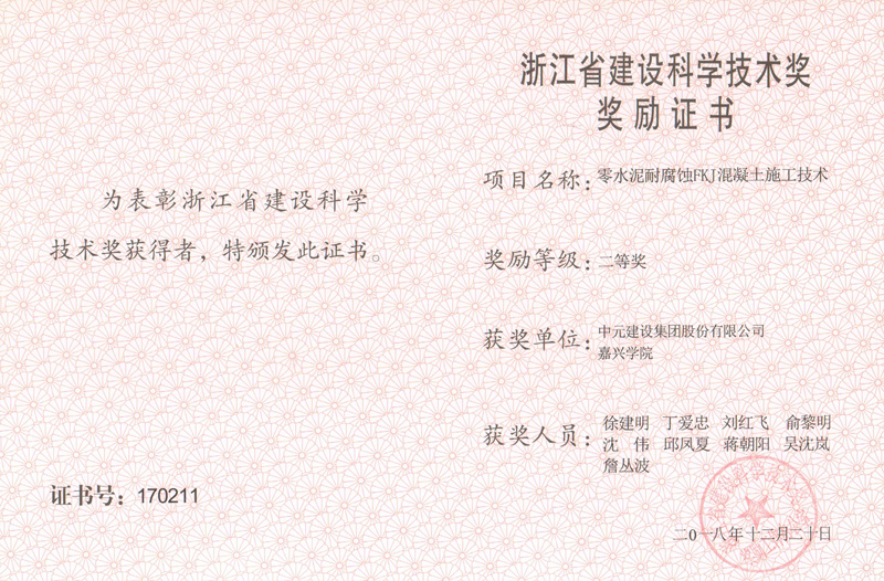 2017浙江省建设科学技术奖(个人)