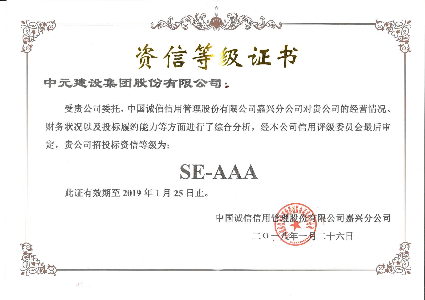 资信等级证书(SE-AAA)