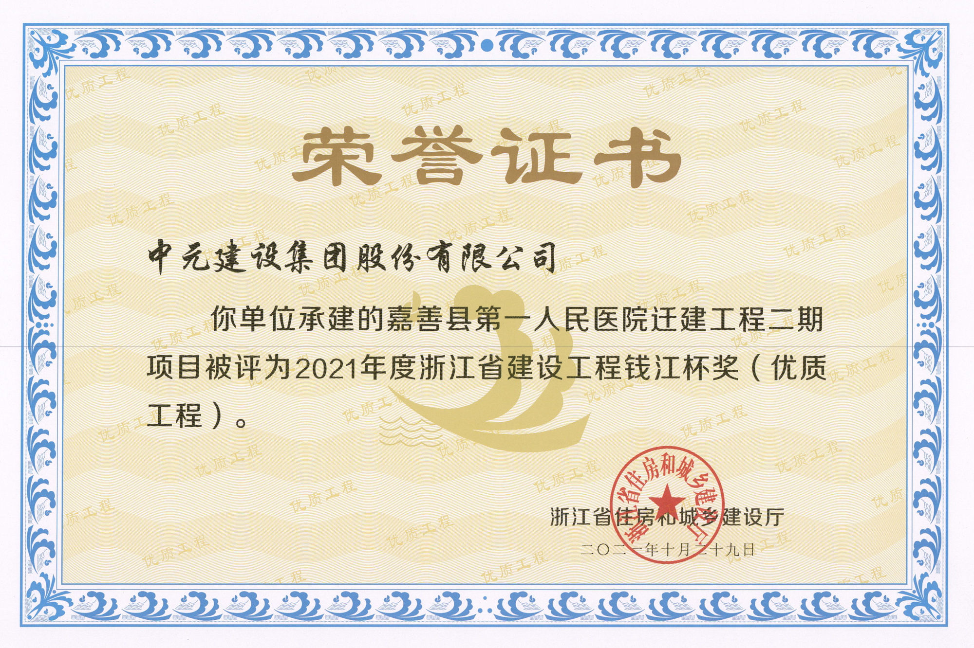 • 2021年度浙江省建设工程钱江杯-嘉善县第一人民医院迁建工程二期项目