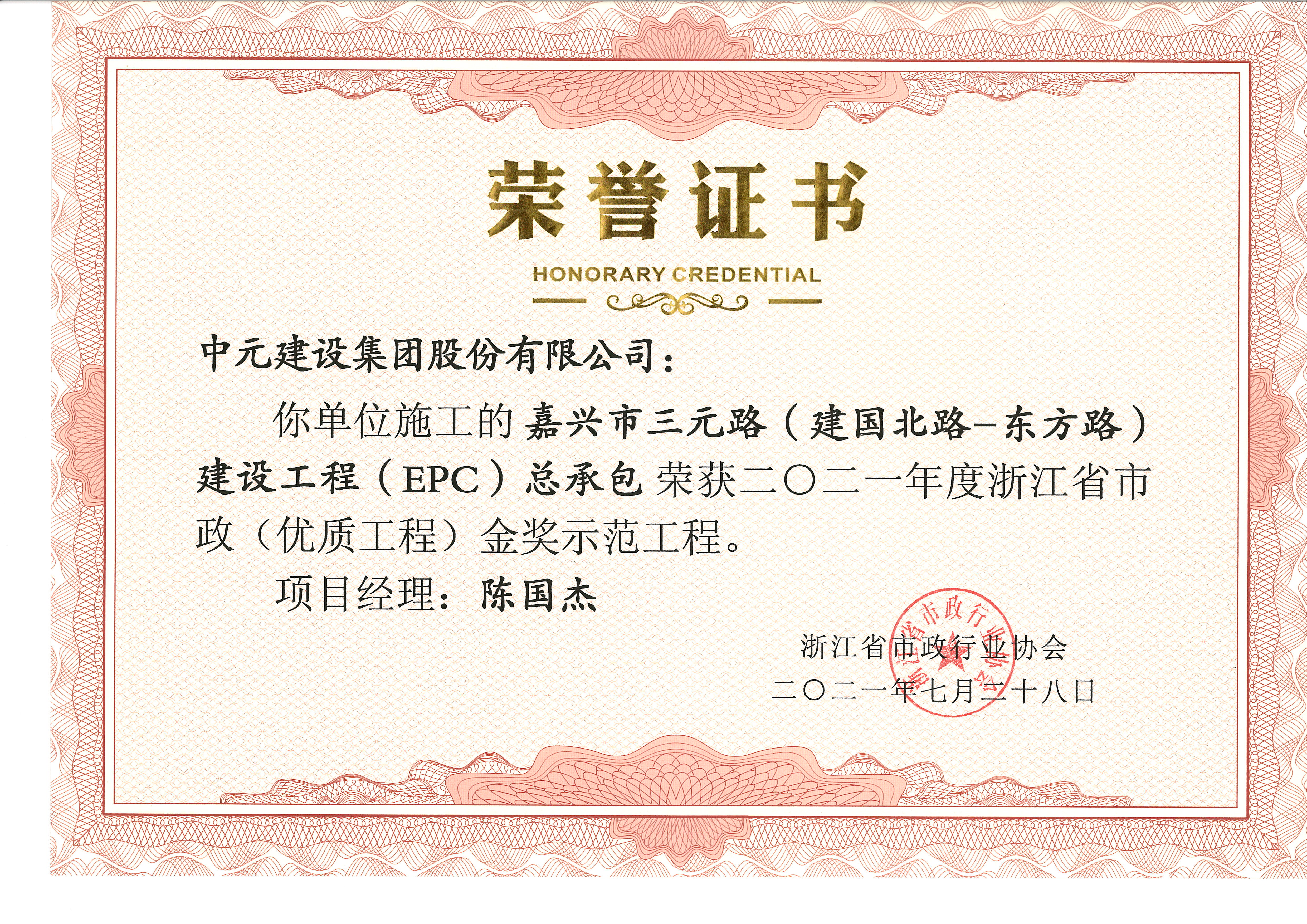 • 2021年度浙江省市政(优质工程)金奖(三元路)