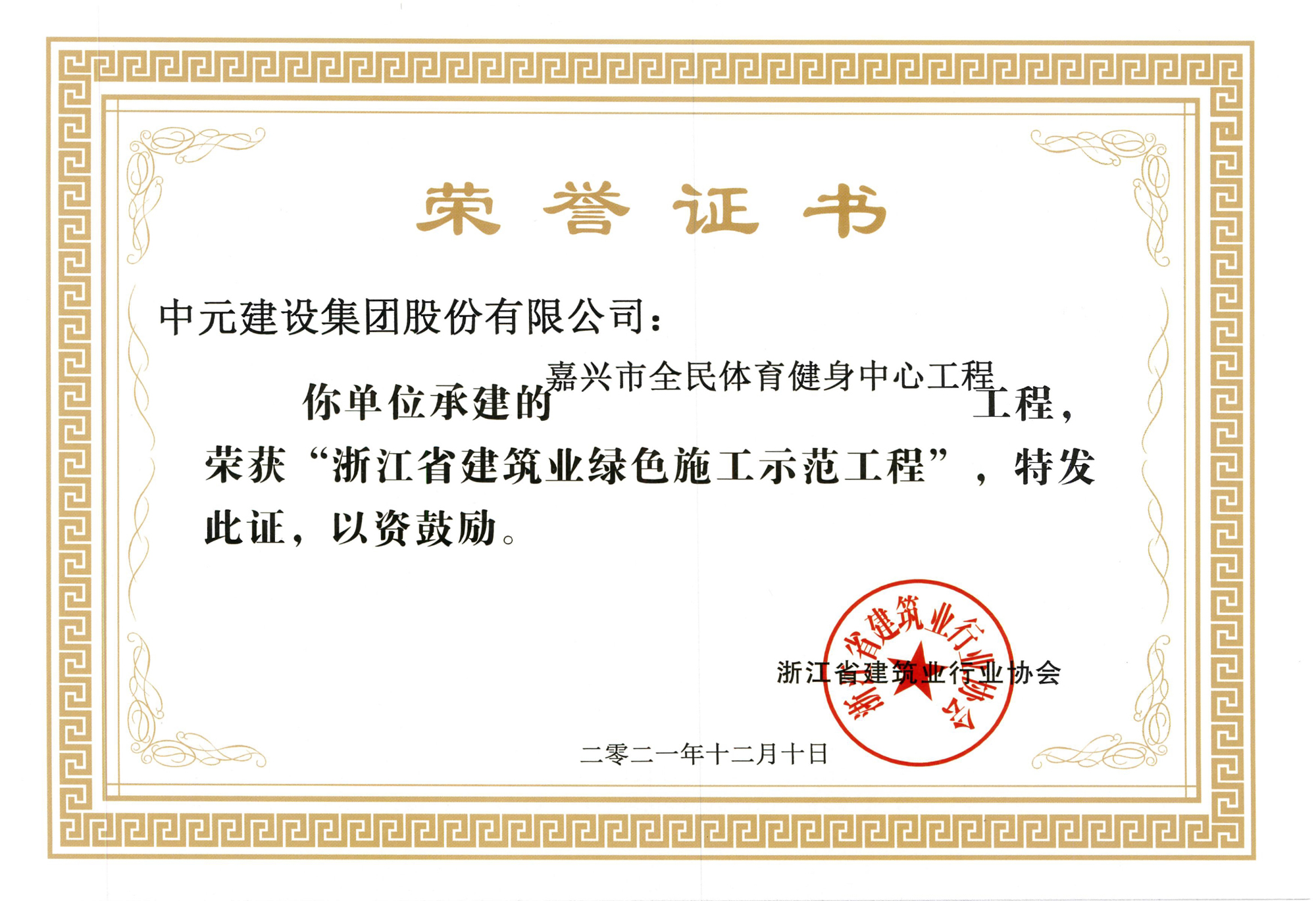 • 2021年度浙江省建筑业绿色施工示范工程(嘉兴市全民体育健身中心工程)