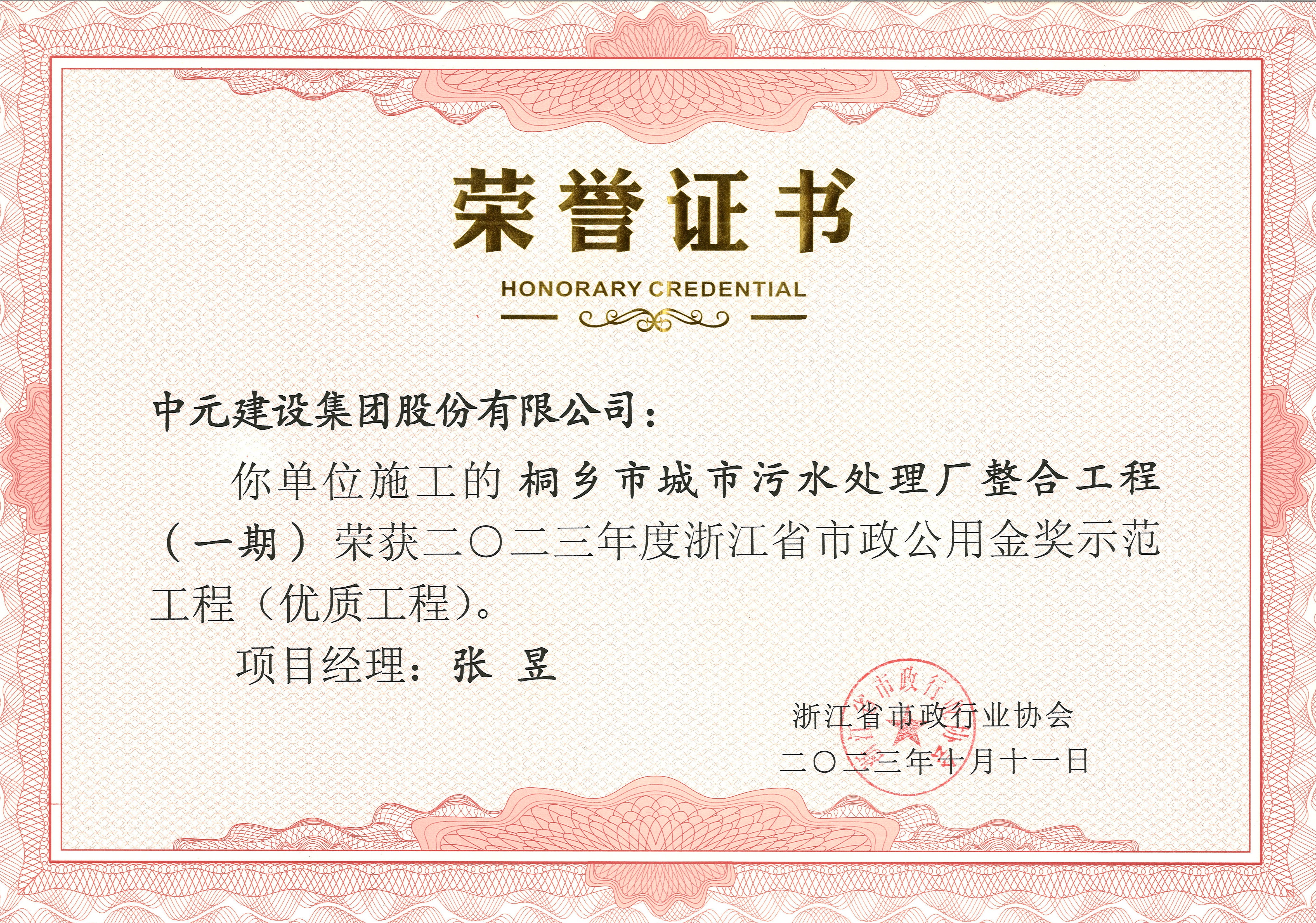 2023年度浙江省市政公用金奖示范工程(桐乡市污水处理厂整合工程(一期))