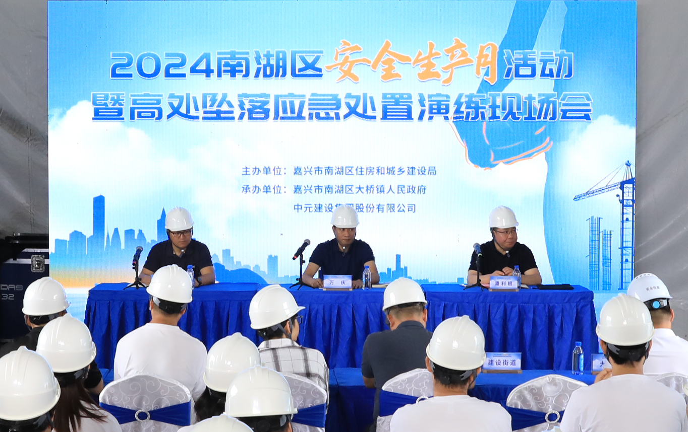 6月28日,2024南湖区“安全生产月”活动暨高处坠落应急处置演练现场会,在集团公司承建的正泰智慧能源华东科创产业园二期建设项目现场顺利举办。南湖区住房和城乡建设局党组成员、总工程师万庆,南湖区大桥镇人民政府副镇长寿海斌等领导参加了本次活动。集团公司常务副总裁潘利根、相关管理人员参加此次现场会。