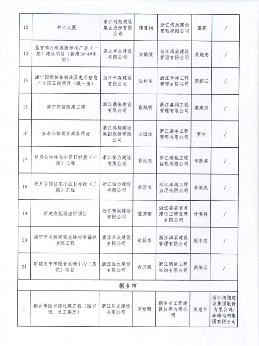 嘉兴市建设局关于公布2020年度嘉兴市建筑安全文明施工标准化工地的通知