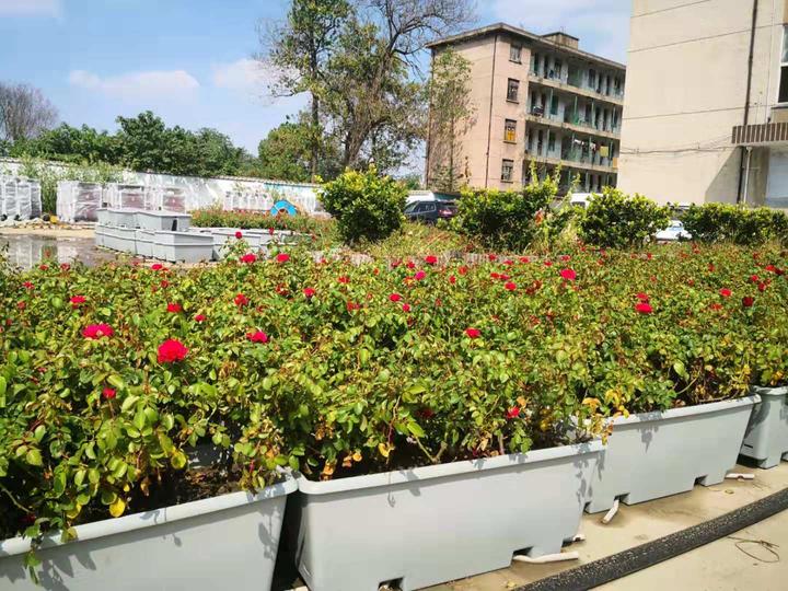 在三元路的施工现场,道路两侧的人行道上,59棵香樟树已经列队成排,工人们用起吊机把戴着“草帽”的红叶石楠柱放到卡车上,再运输到沿线道路,摆放到正确的位置上。项目部的大院里,一个个花箱排列成整齐队形,等待着被运走。